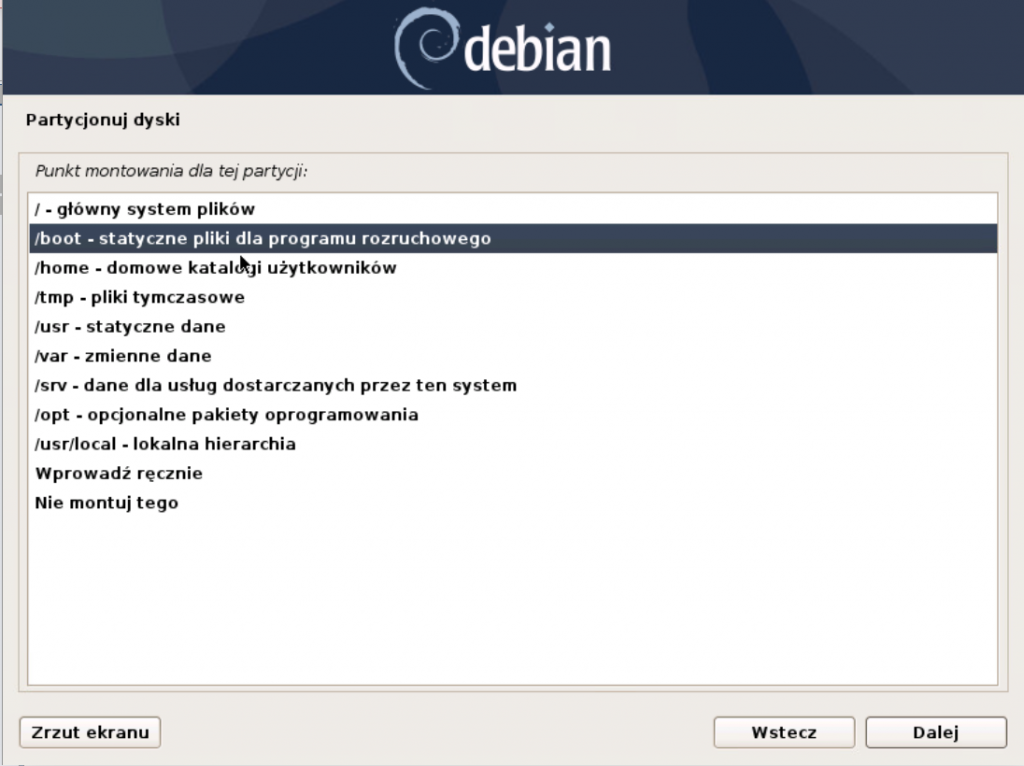 Przypisujemy punk montowania czyli w tym wypadku /boot