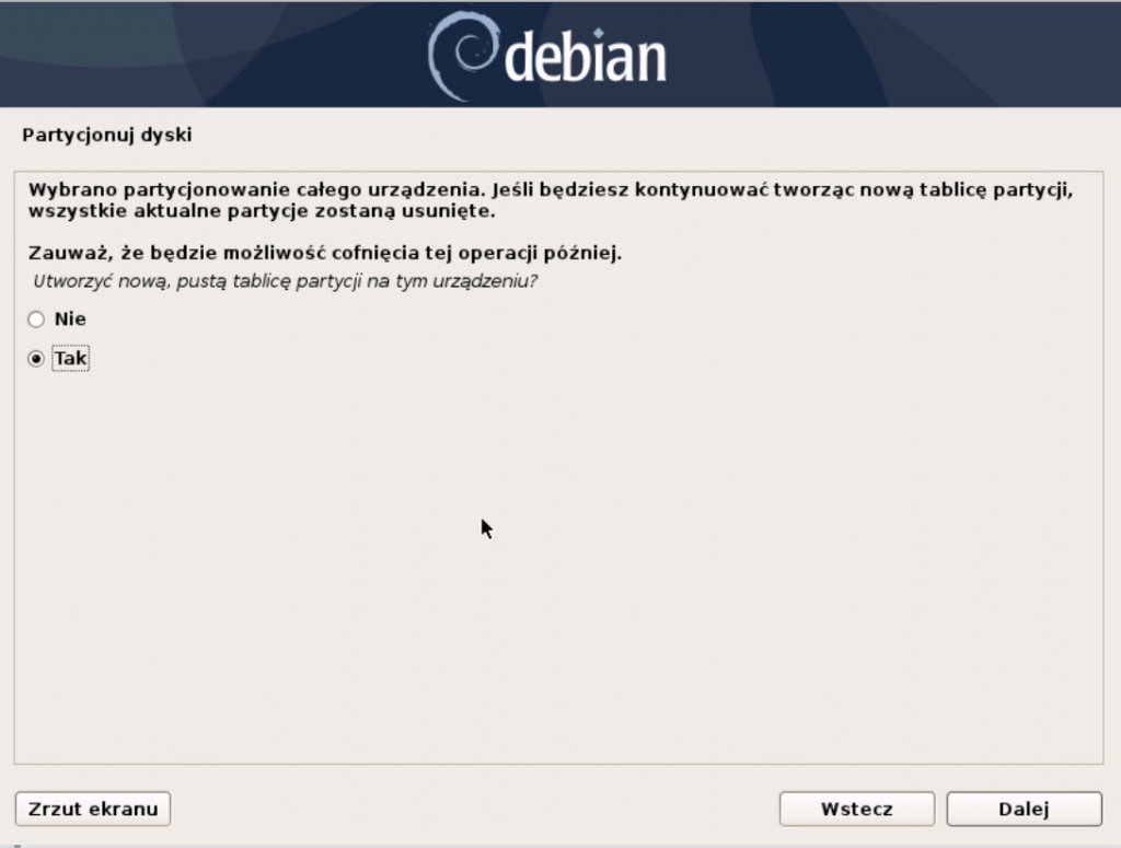I po kliknięciu Dalej przechodzimy do standardowej instalacji systemu operacyjnego.